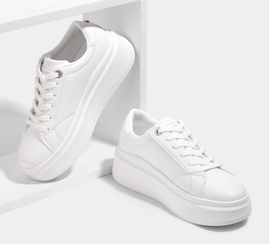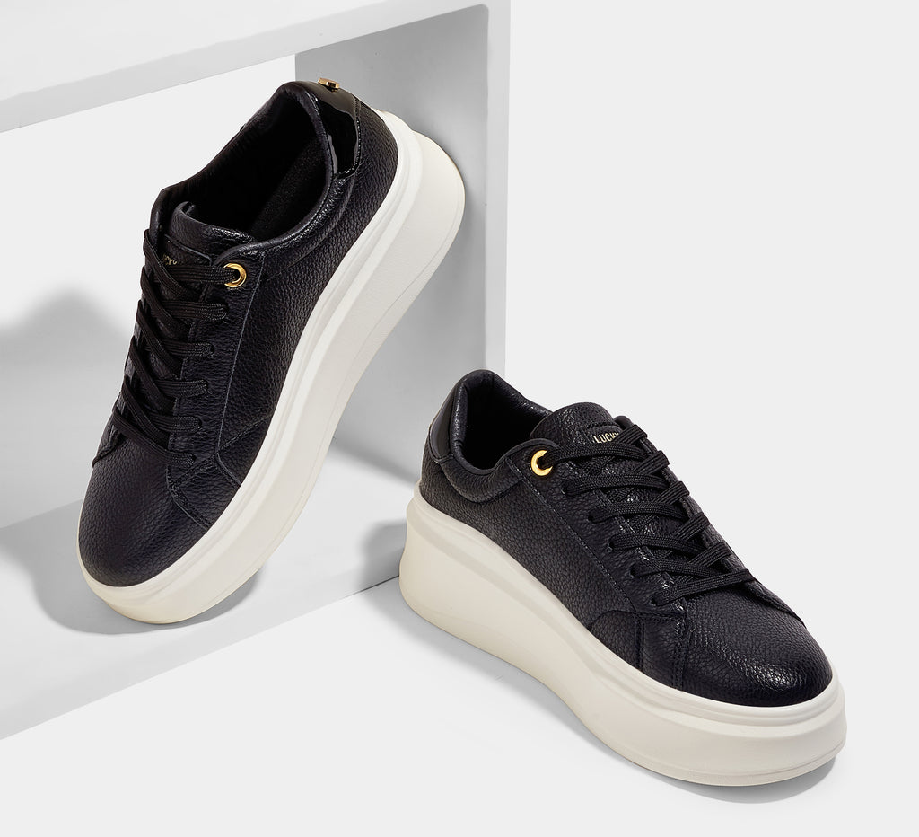 LUCKY STEP Women's 2.6" Platform Sneakers - Faux Leather Casual Walking Shoes