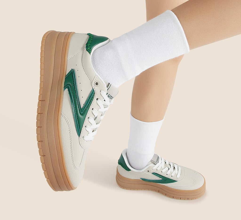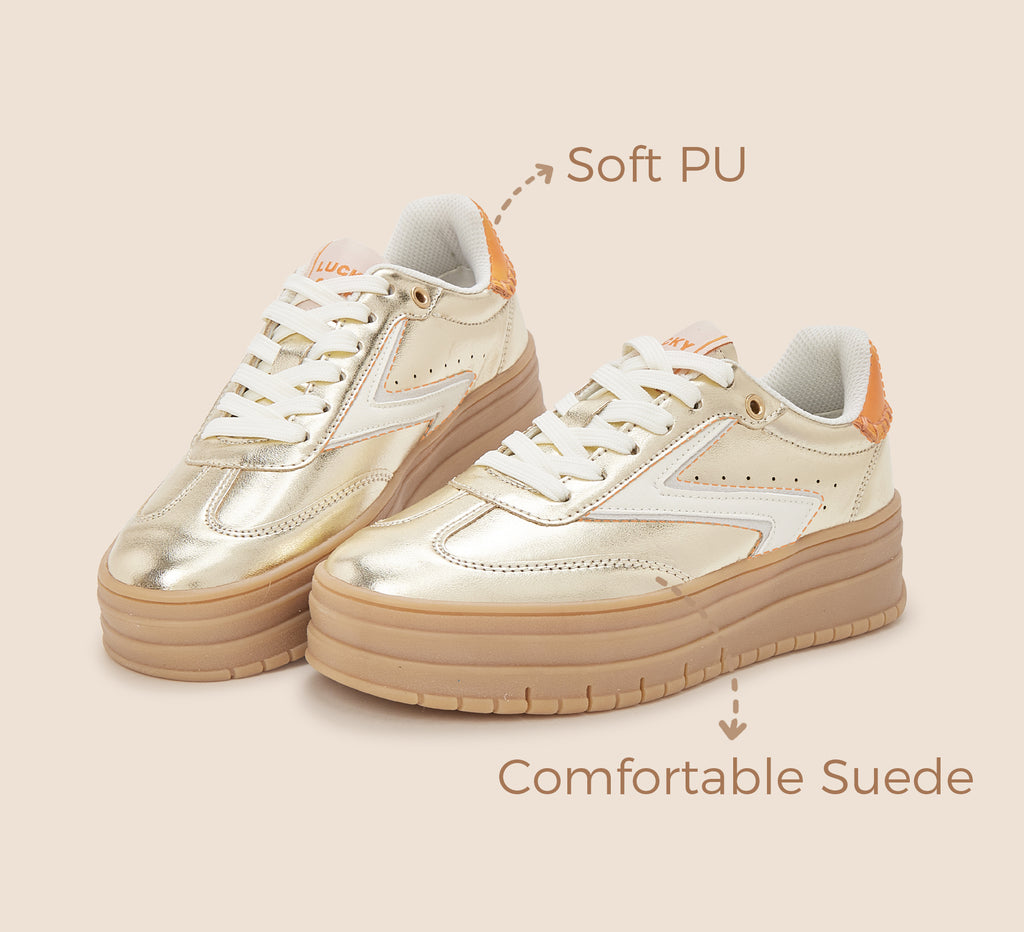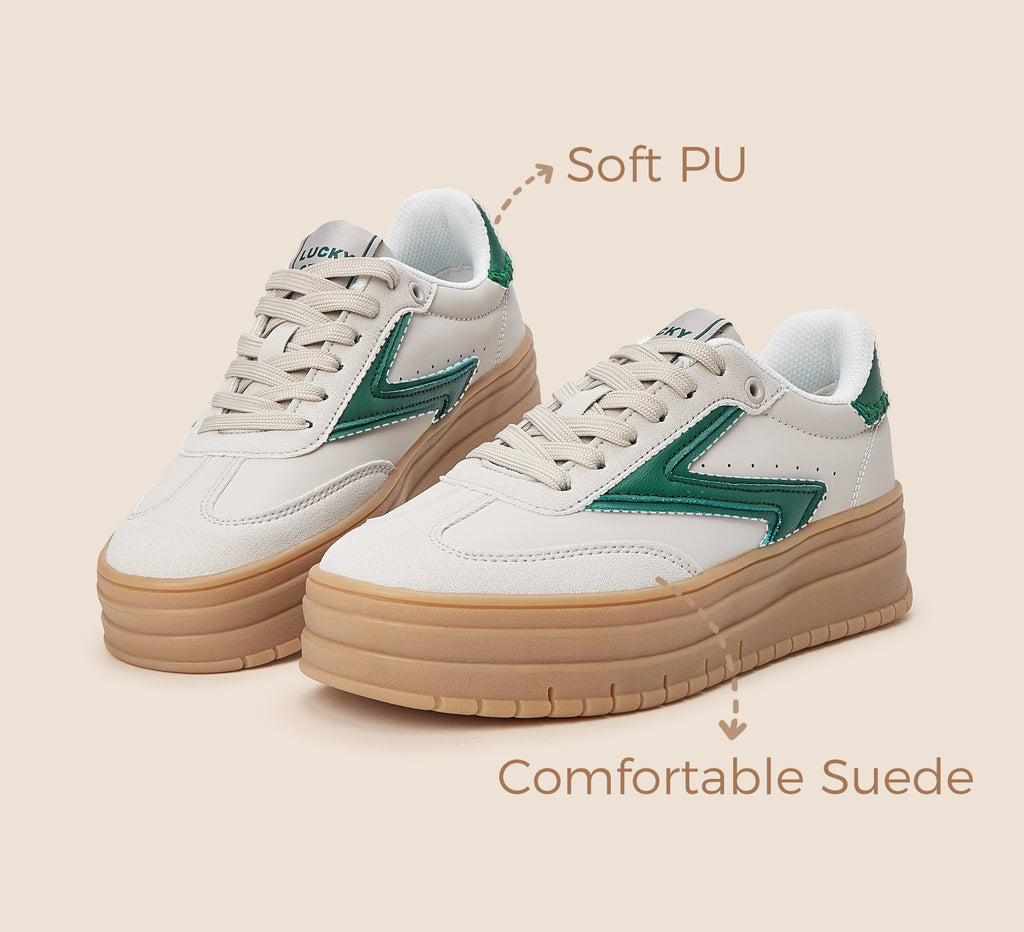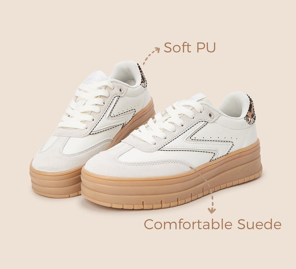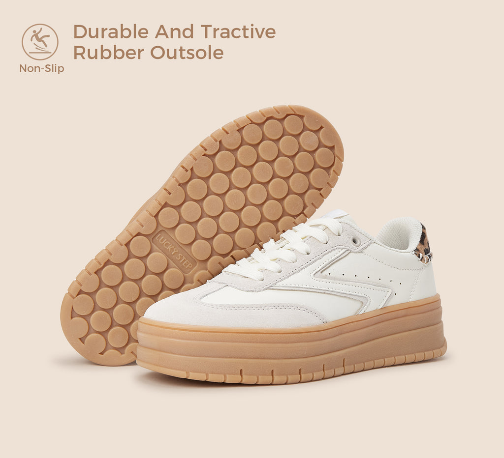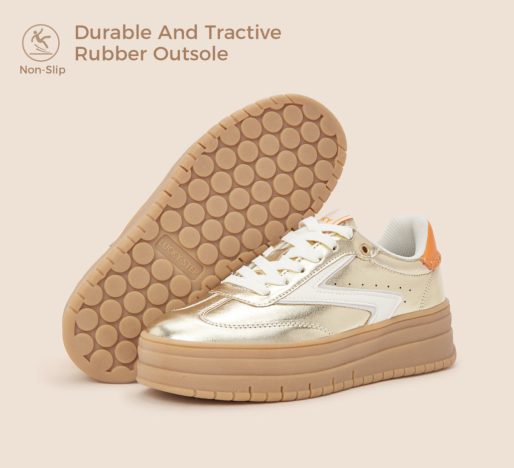 LUCKY STEP Women's Lightning Platform Sneakers - 1.88" Gum Sole Walking Shoes