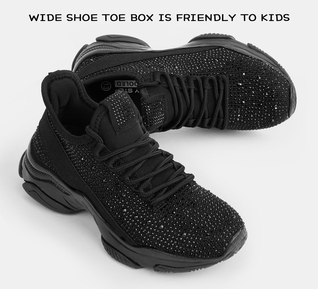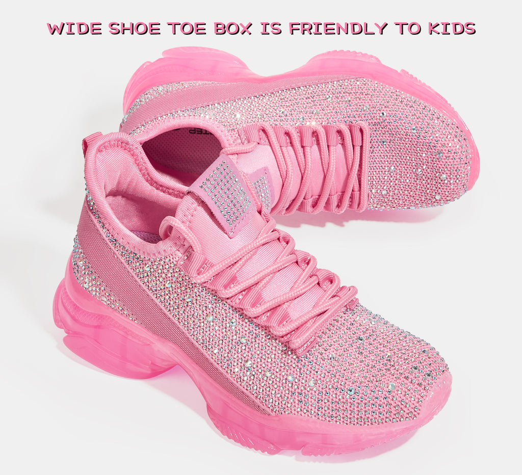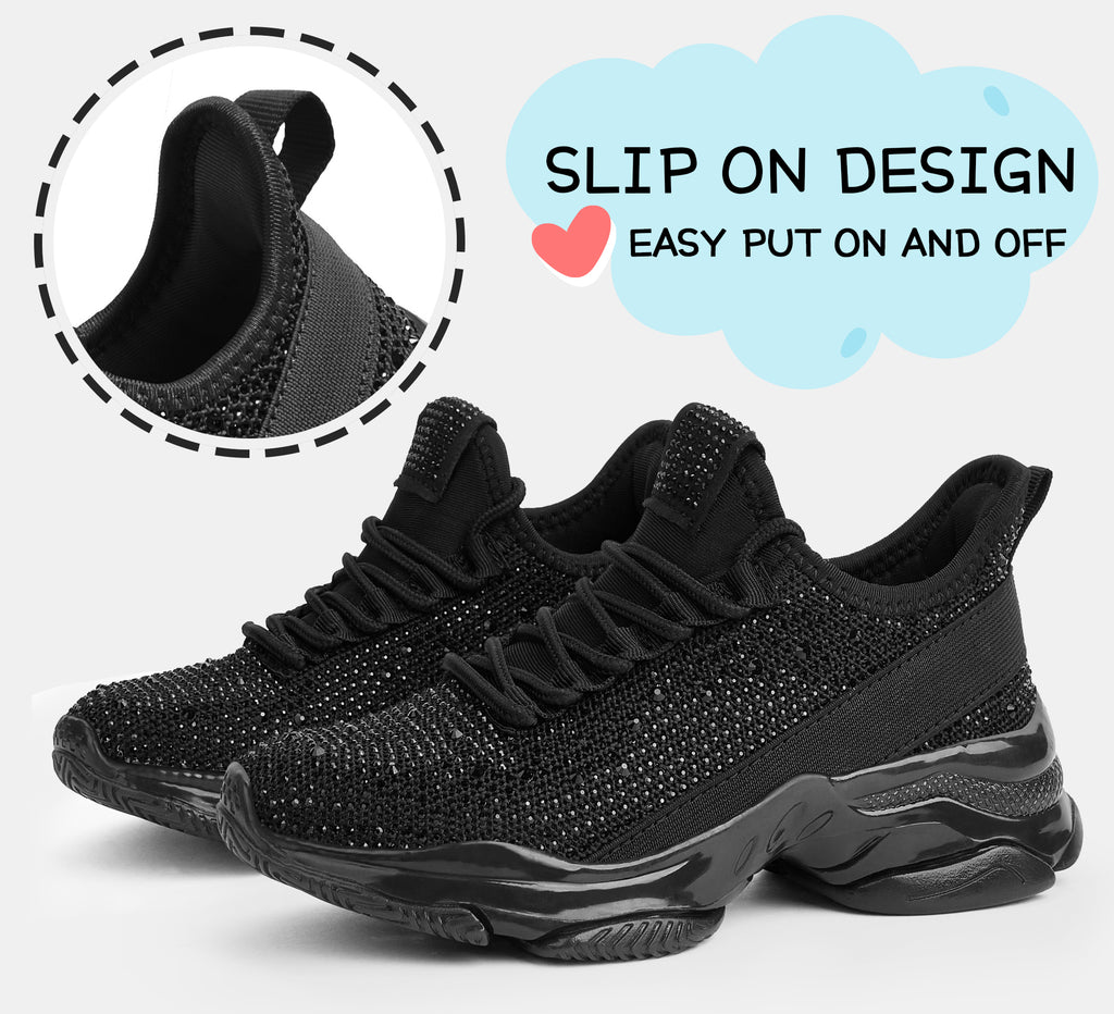 LUCKY STEP Girls Rhinestone Slip-On Sneakers - Kids Sparkly Lightweight Tennis Shoes with Jelly Sole & 1.57" Platform