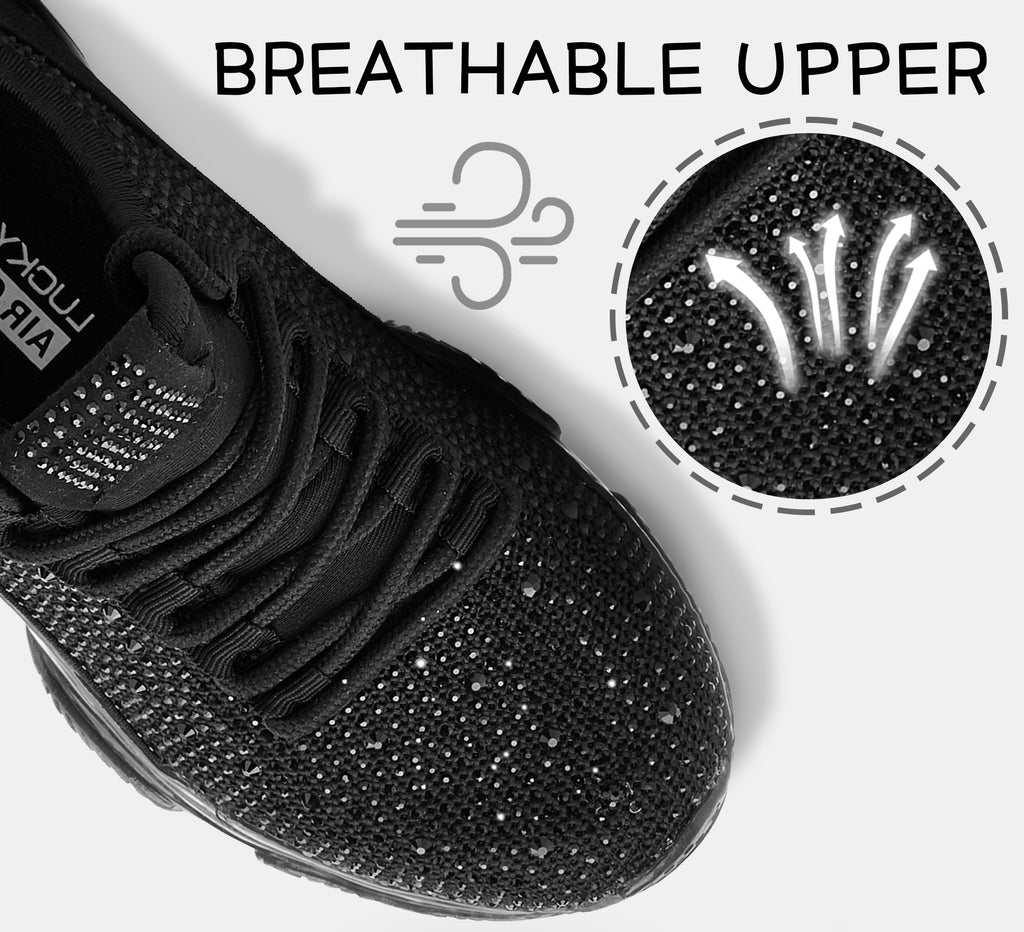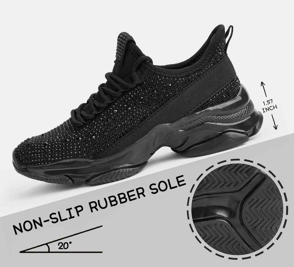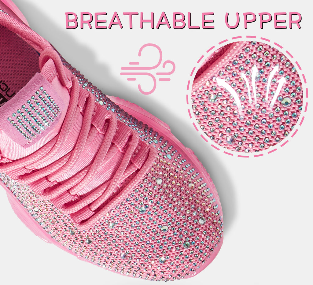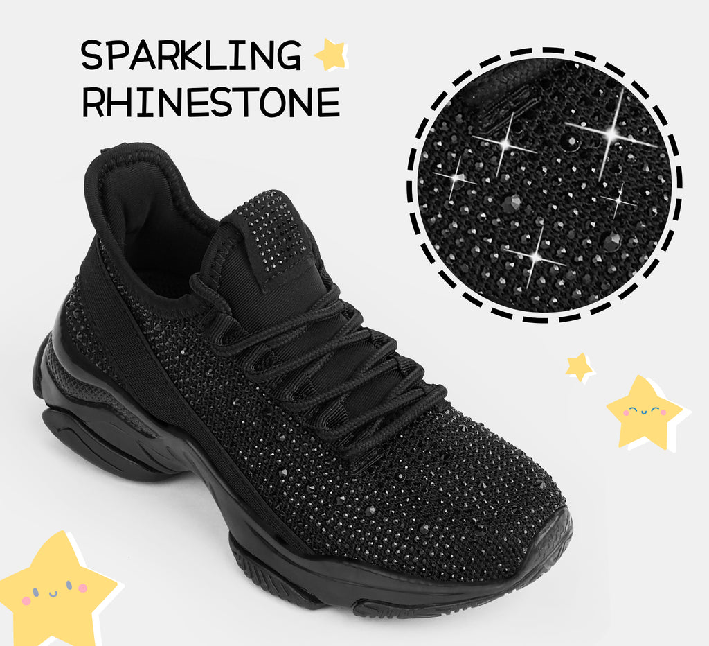 LUCKY STEP Girls Rhinestone Slip-On Sneakers - Kids Sparkly Lightweight Tennis Shoes with Jelly Sole & 1.57" Platform