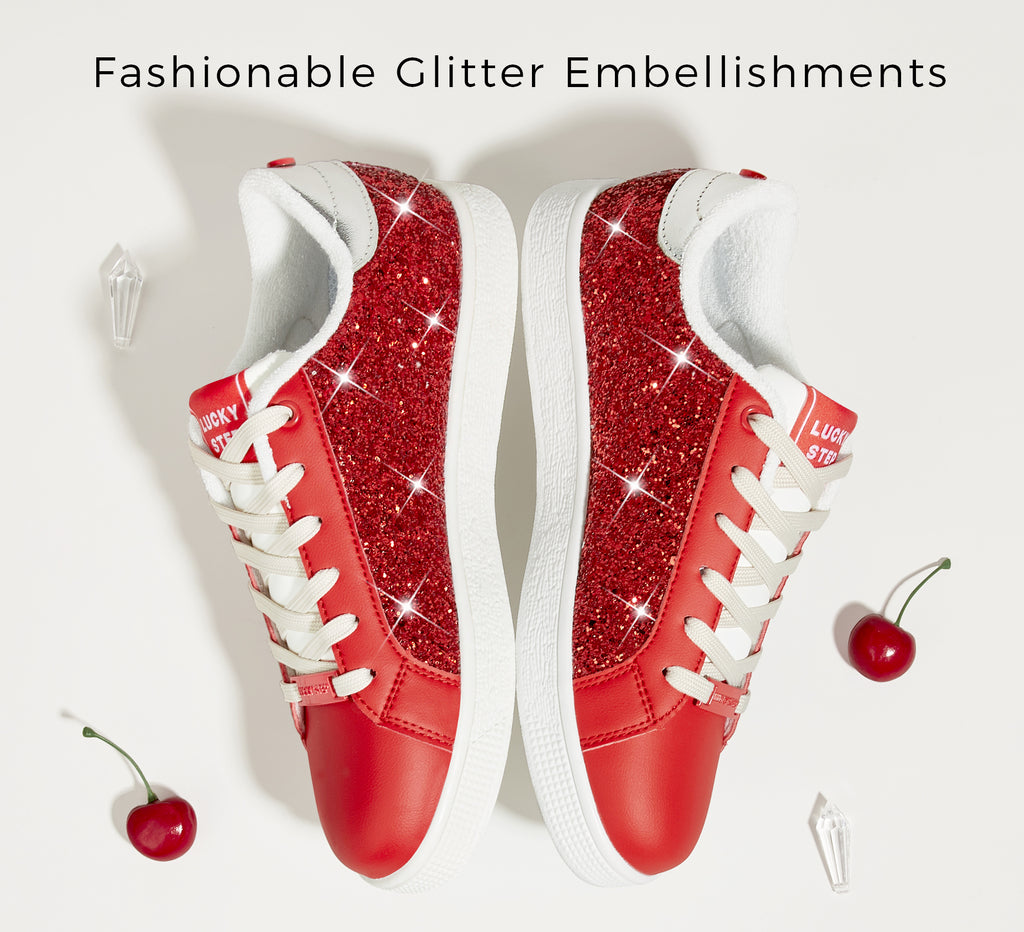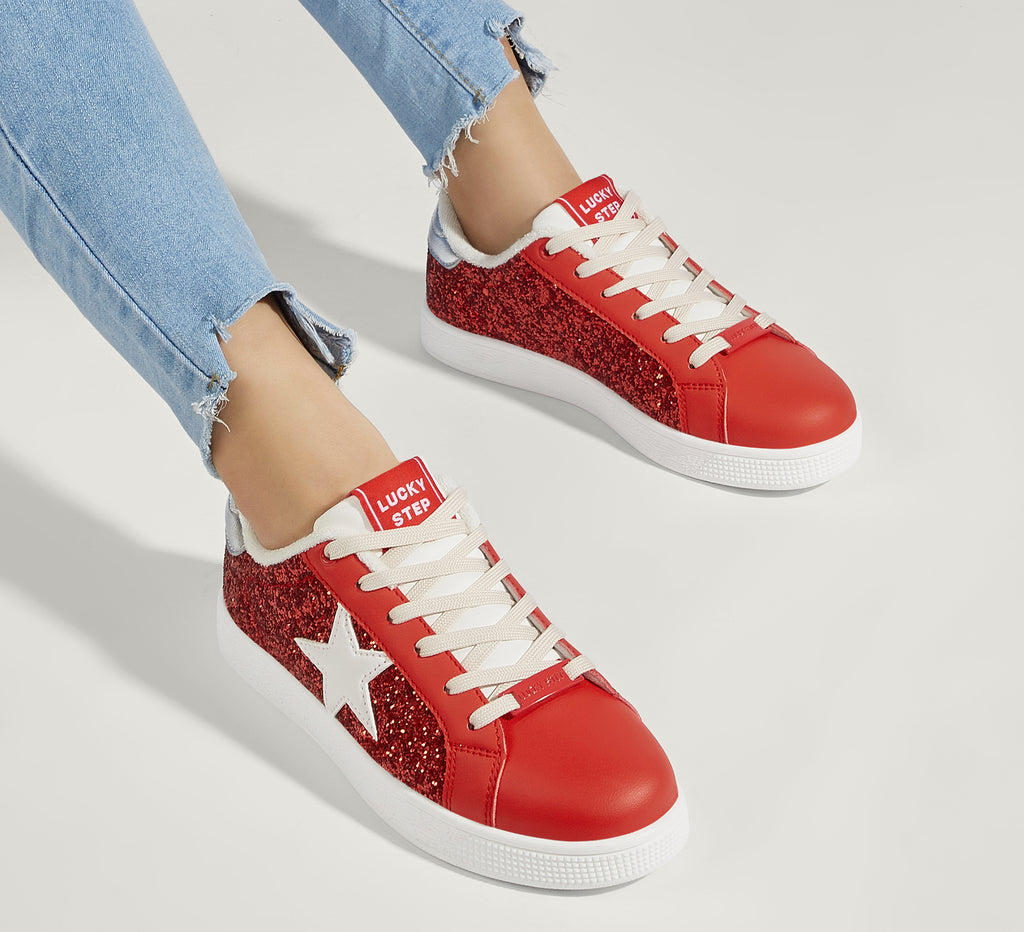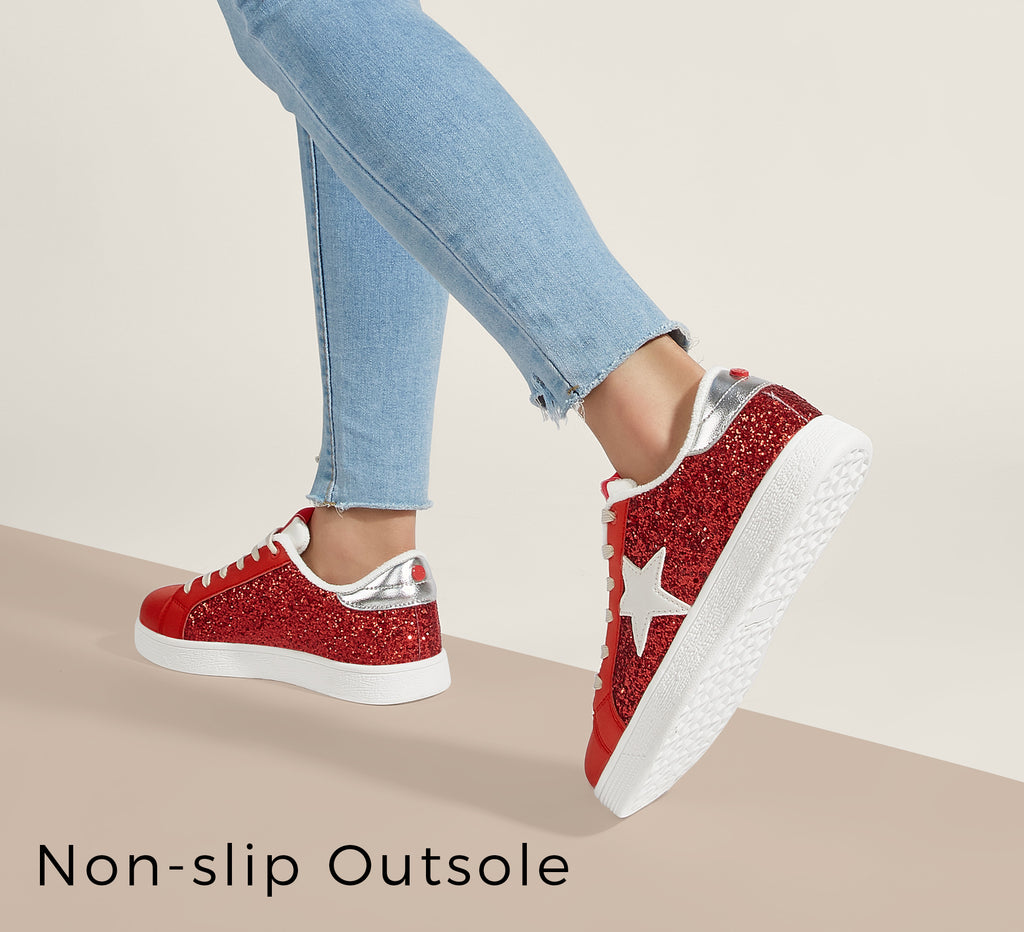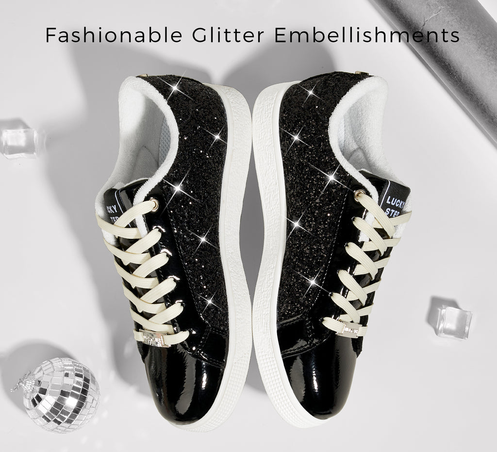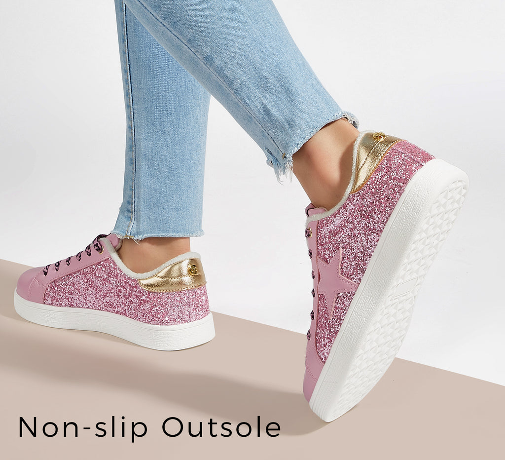 LUCKY STEP Women's Star Glitter Sneakers - Sparkly Fashion Walking Shoes