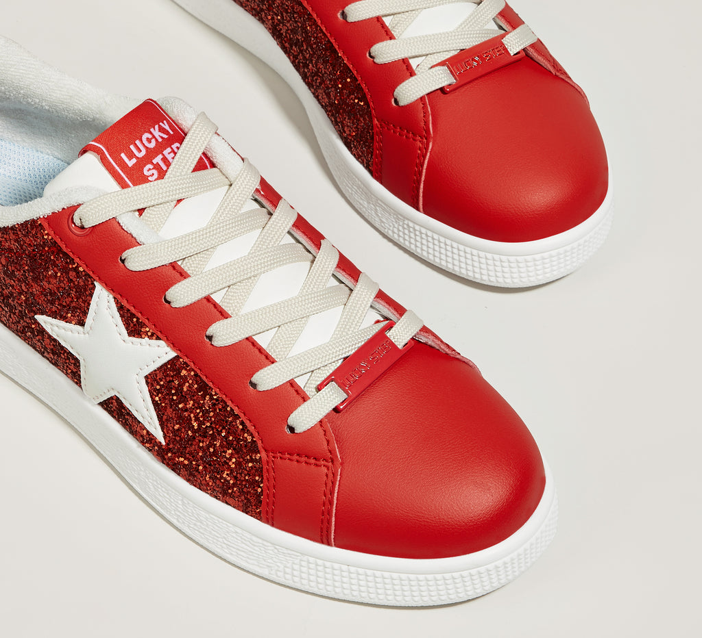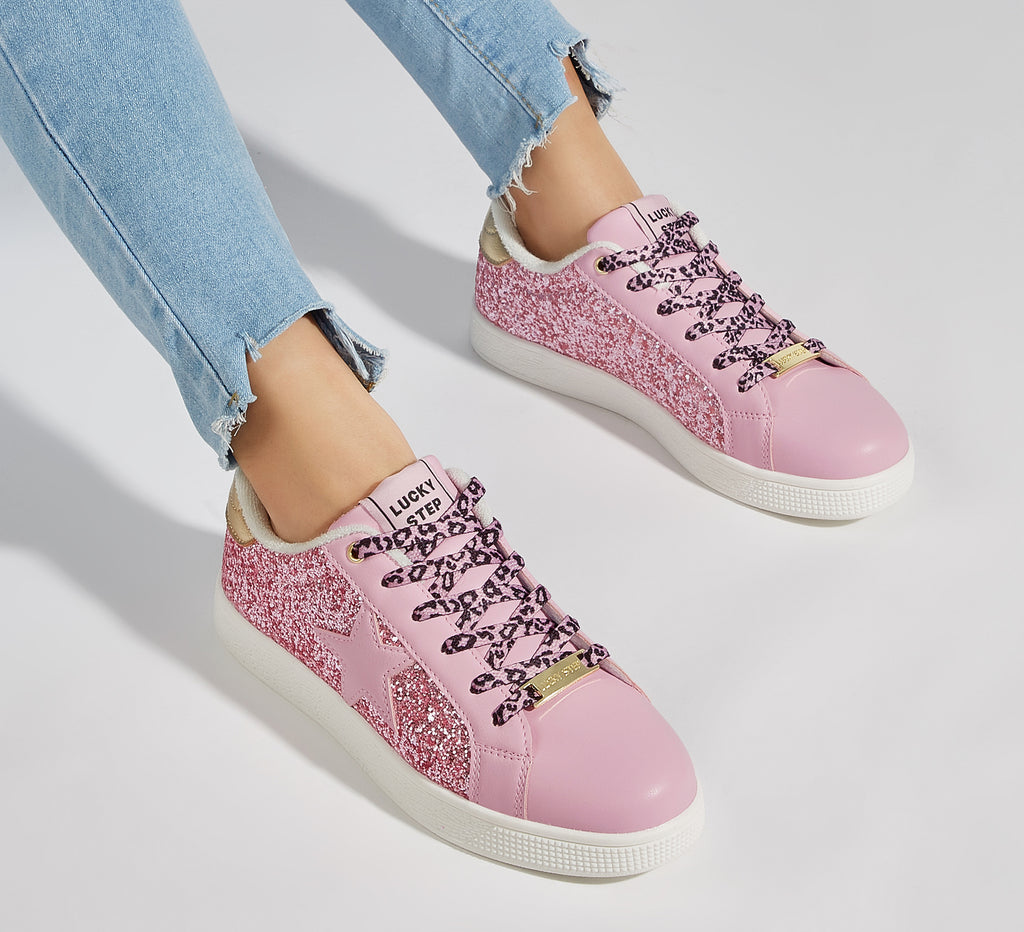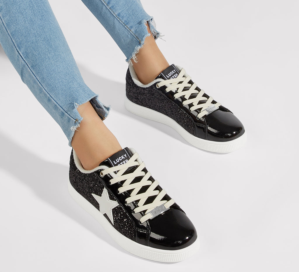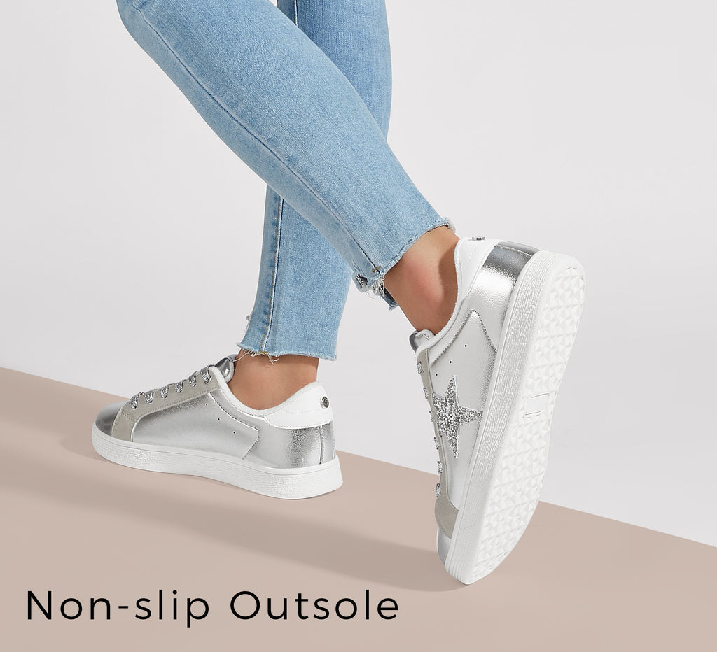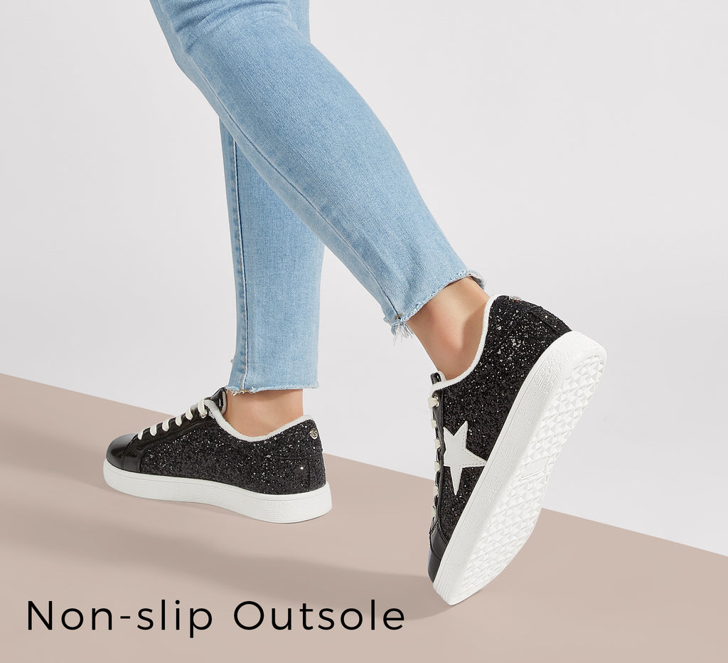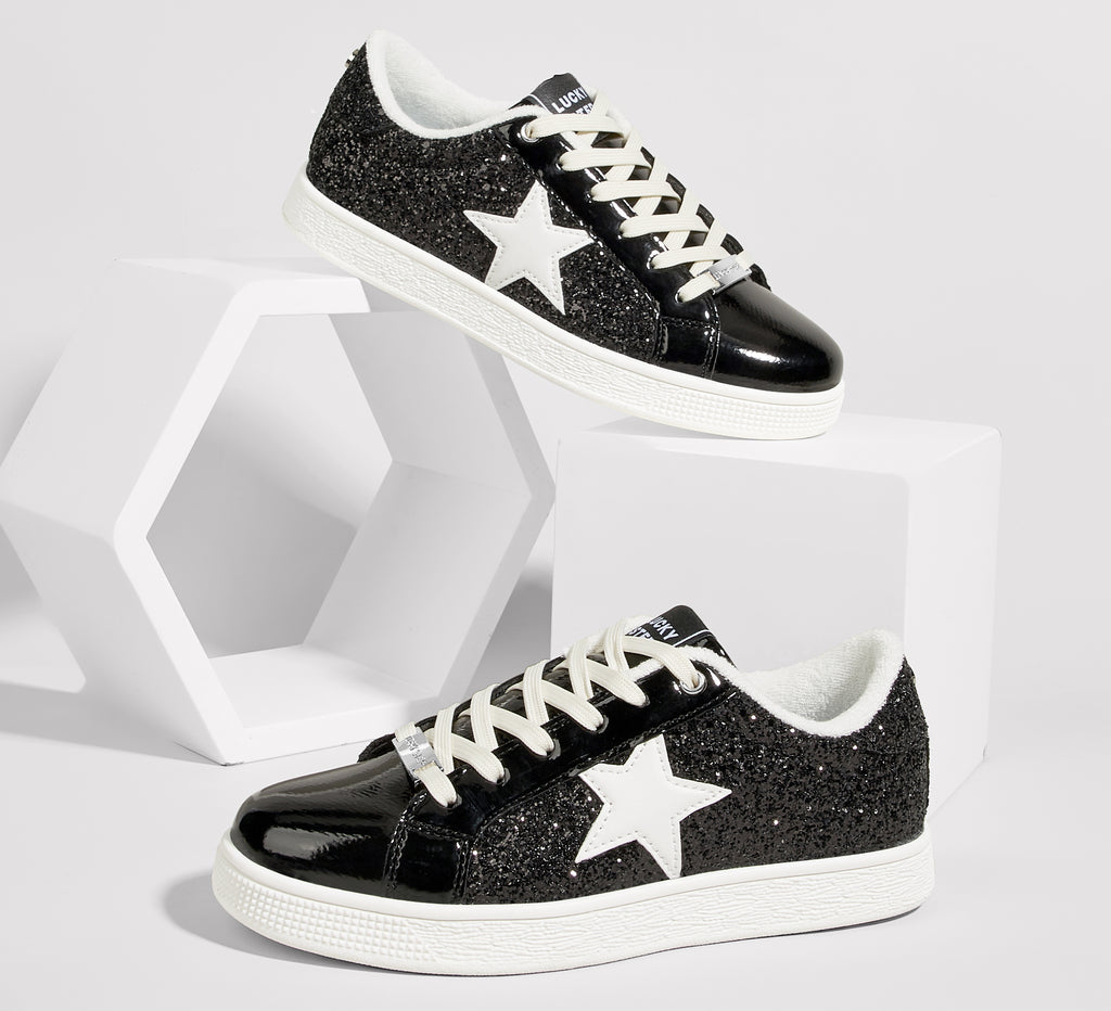 LUCKY STEP Women's Star Glitter Sneakers - Sparkly Fashion Walking Shoes