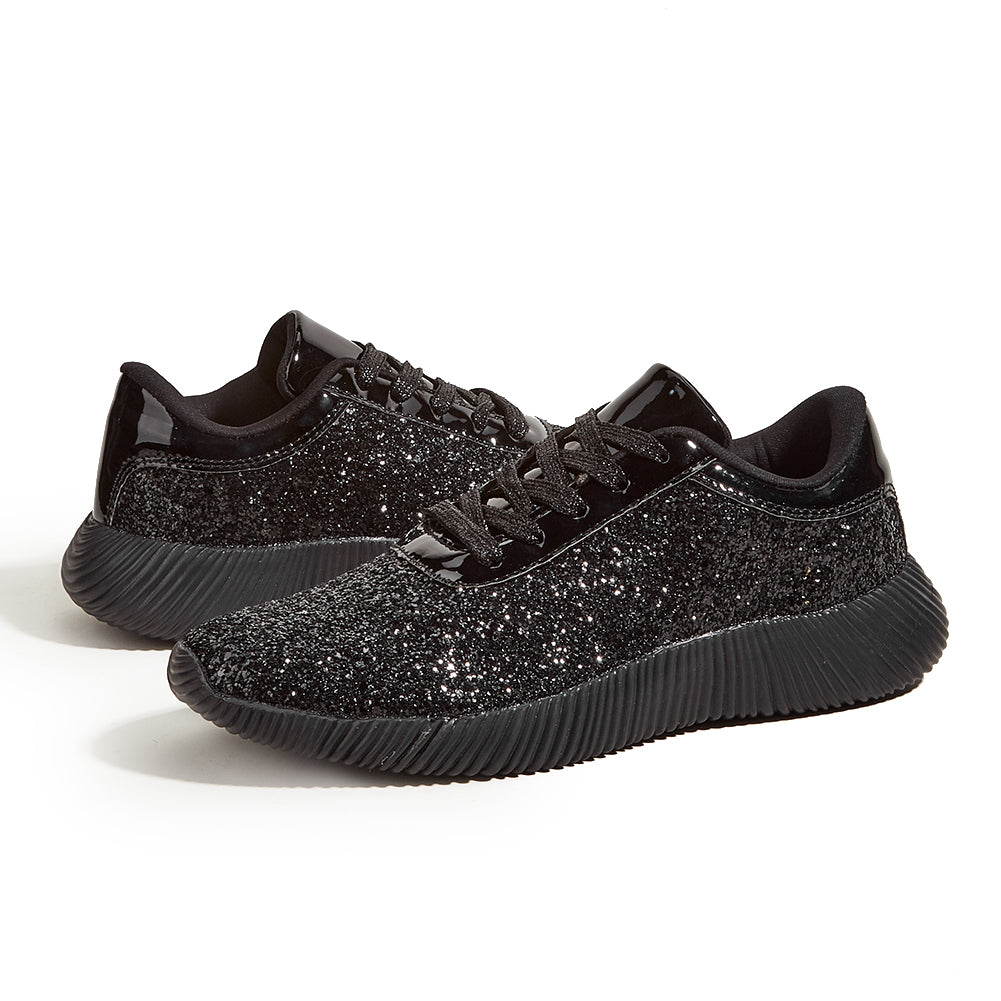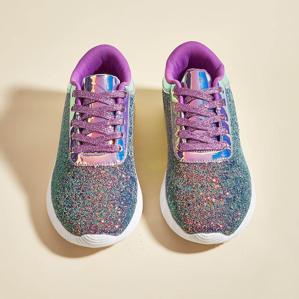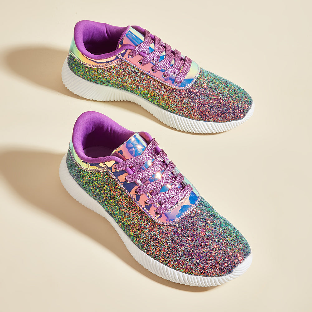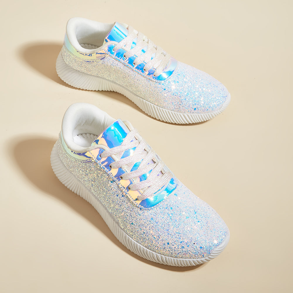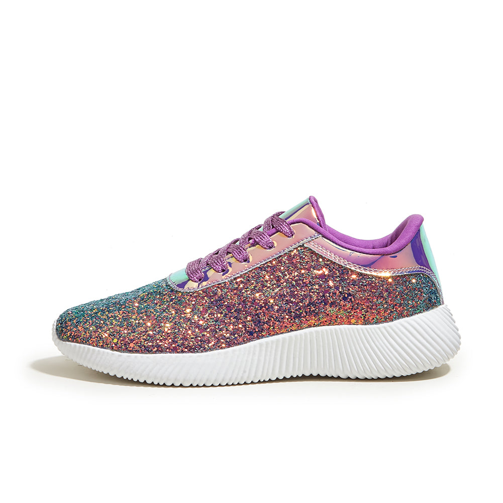 Lucky Step Women's Glitter Sequins Tennis Shoes - Sparkly Retro Braided Walking Sneakers