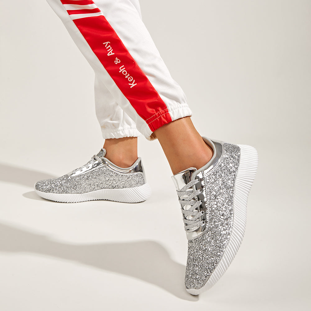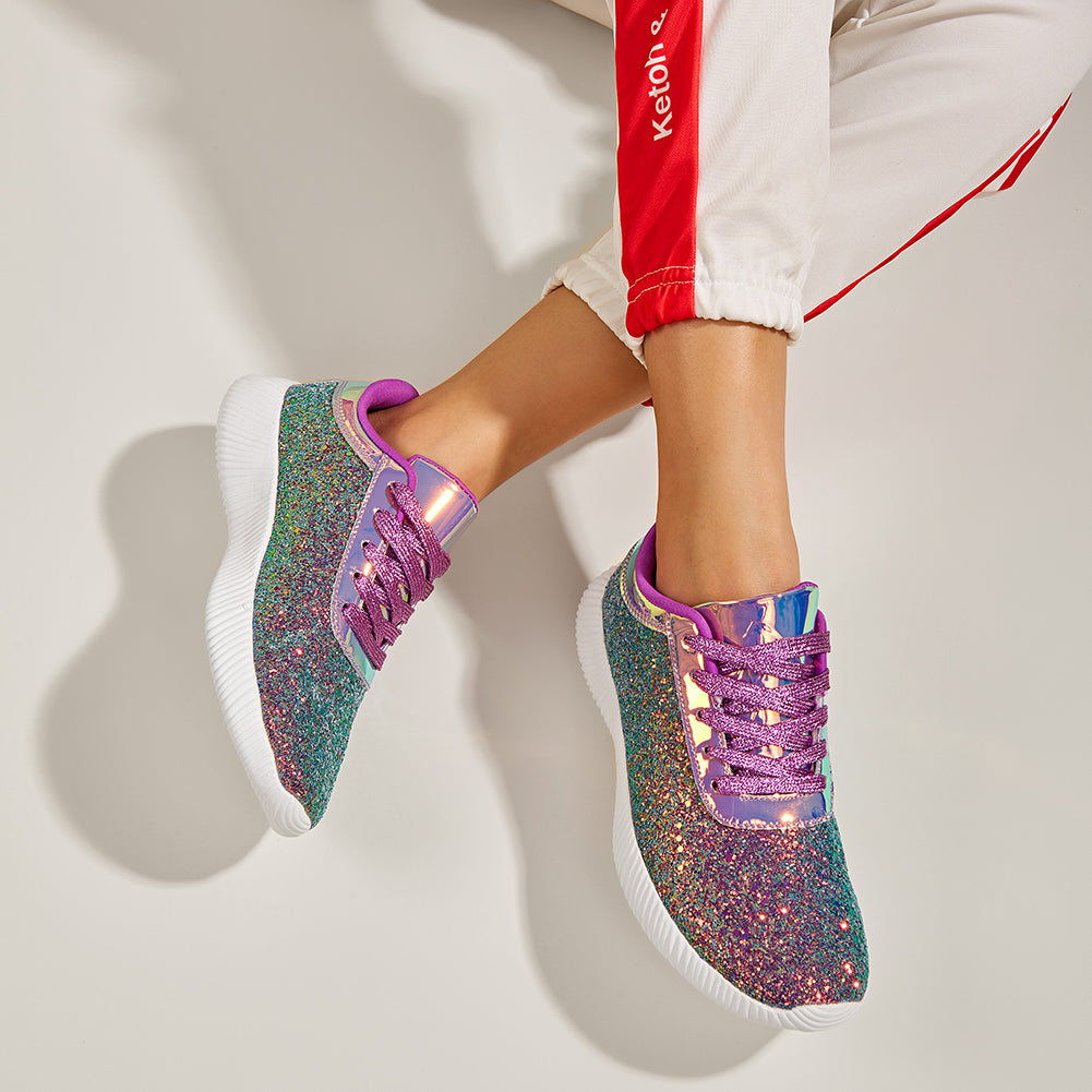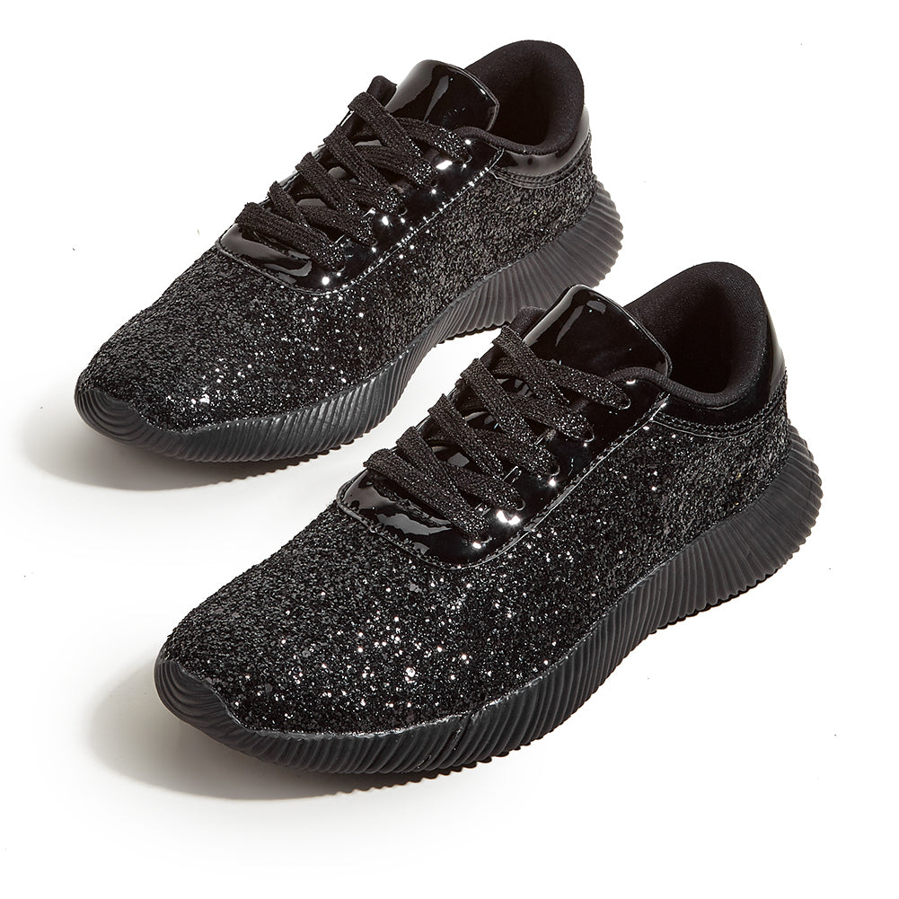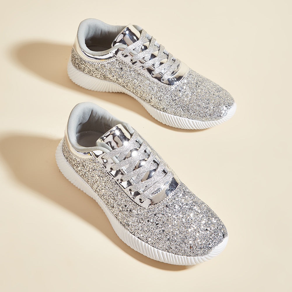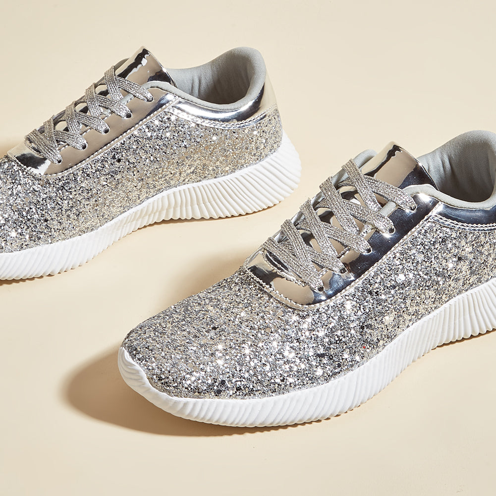 Lucky Step Women's Glitter Sequins Tennis Shoes - Sparkly Retro Braided Walking Sneakers