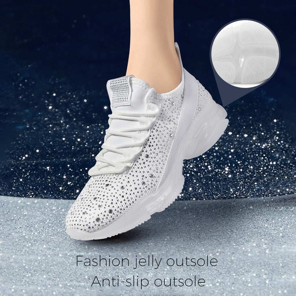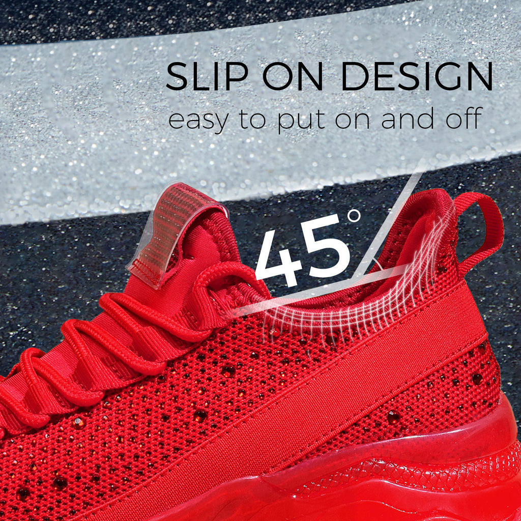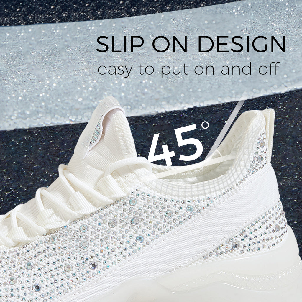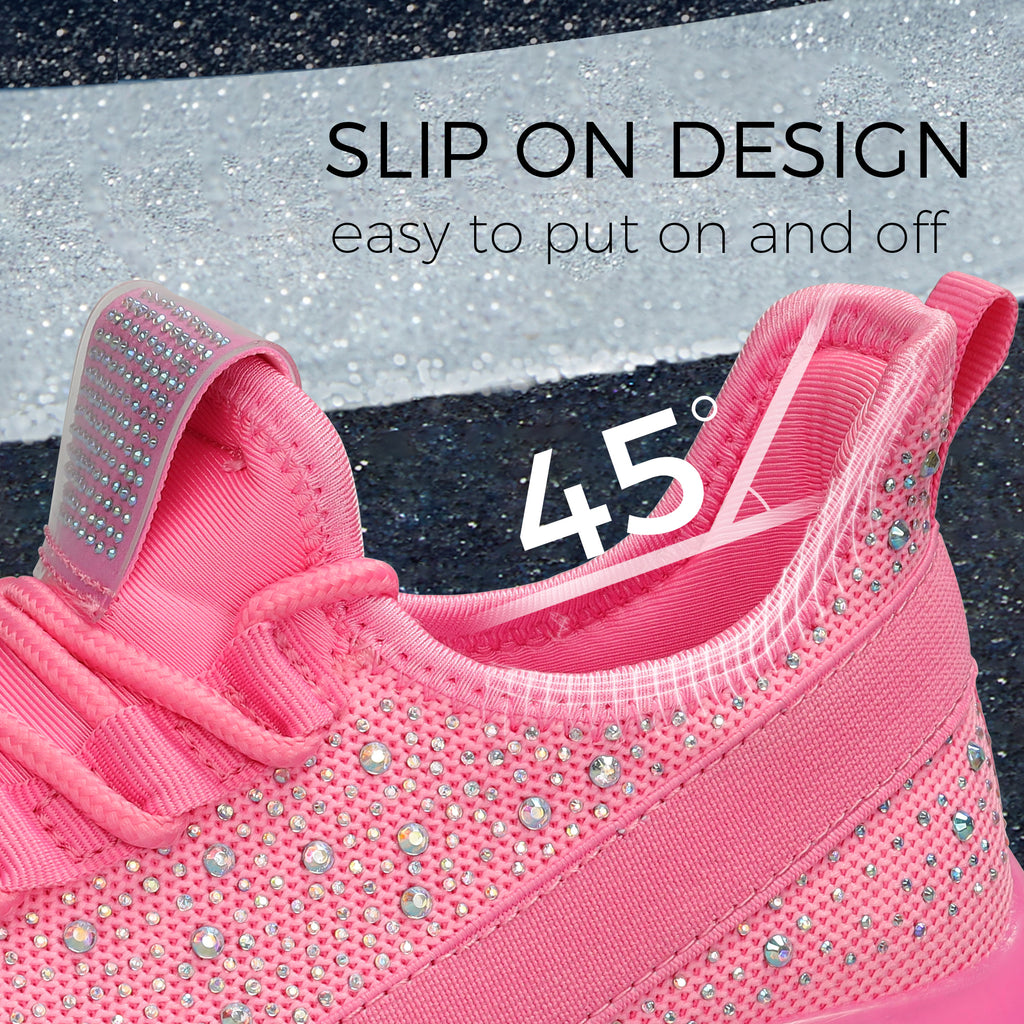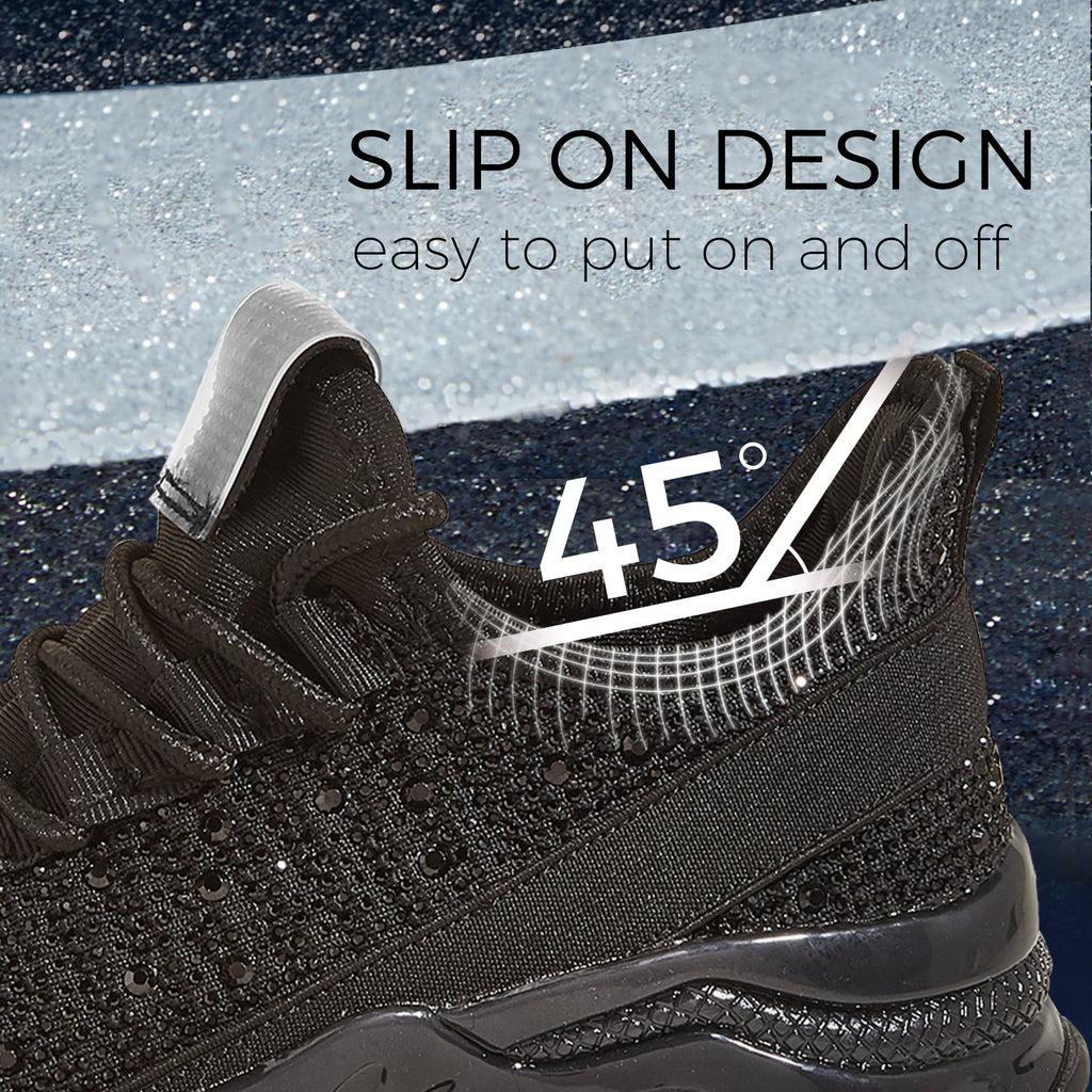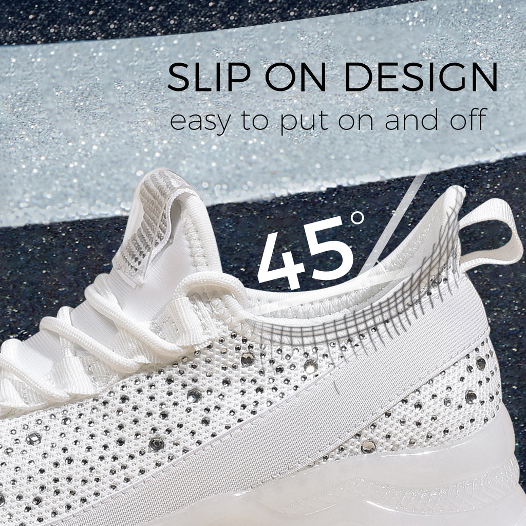 Lucky Step Women's Rhinestone Mesh Slip-On Sneakers - Sparkle Glitter Breathable Walking Shoes