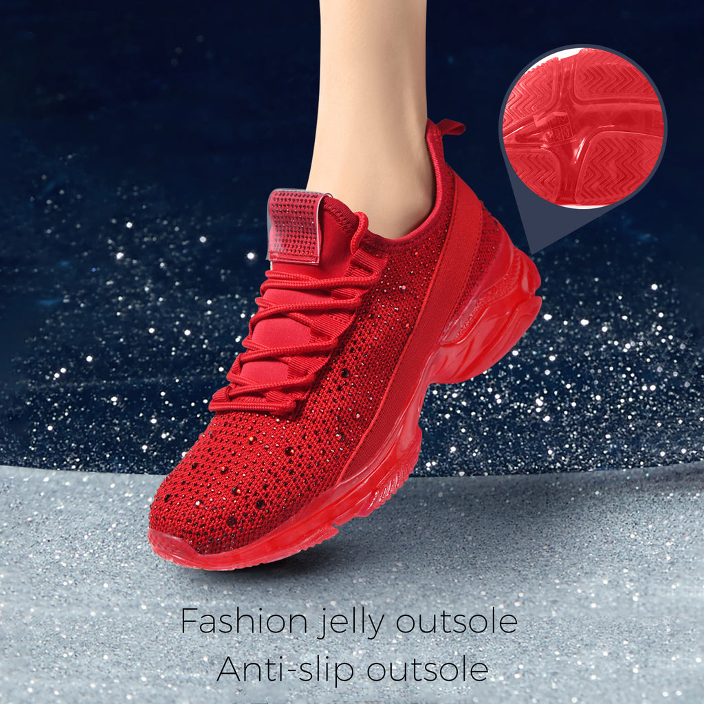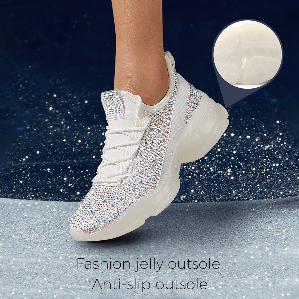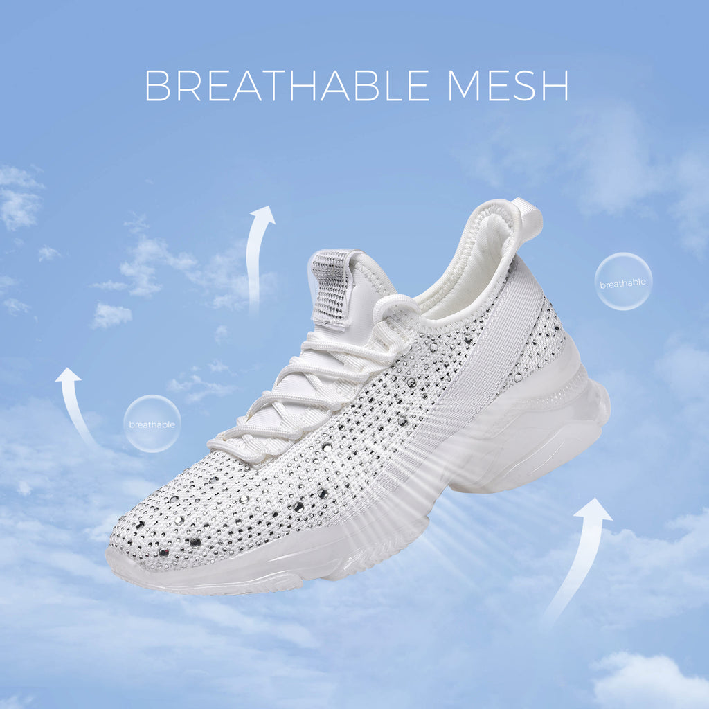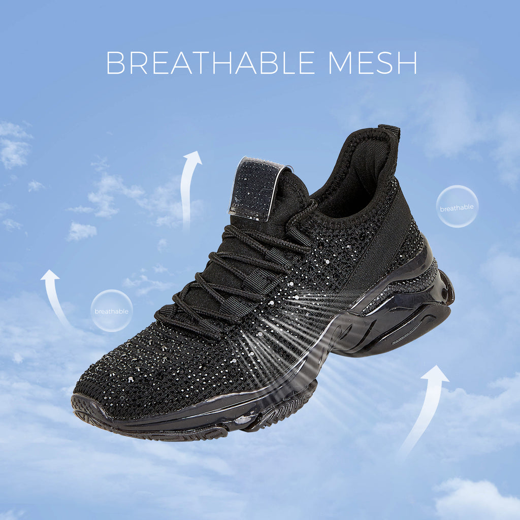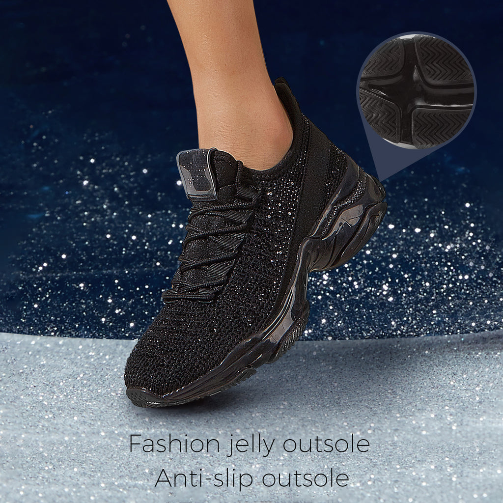 Lucky Step Women's Rhinestone Mesh Slip-On Sneakers - Sparkle Glitter Breathable Walking Shoes