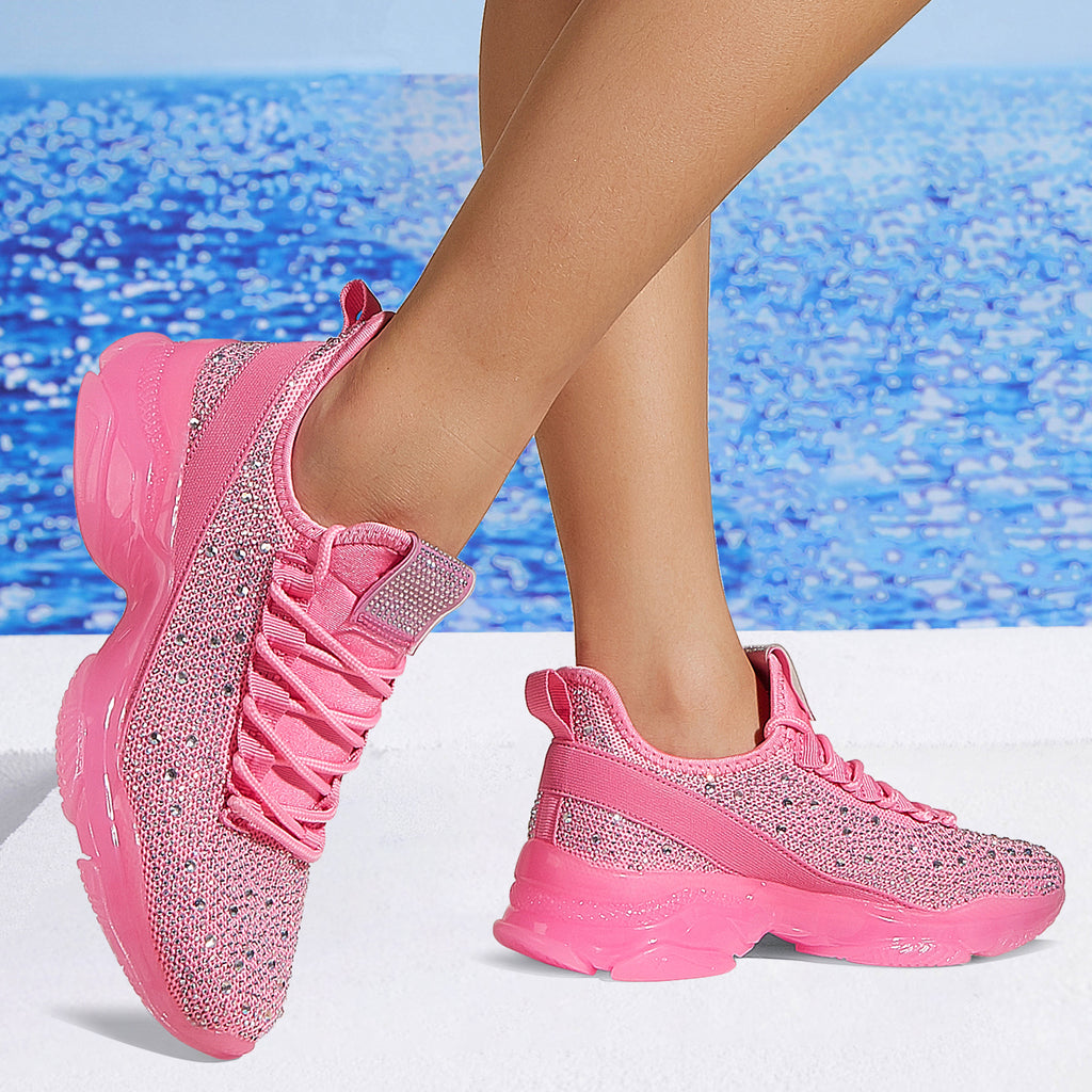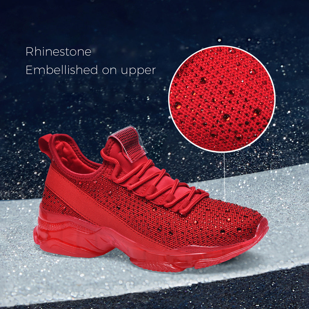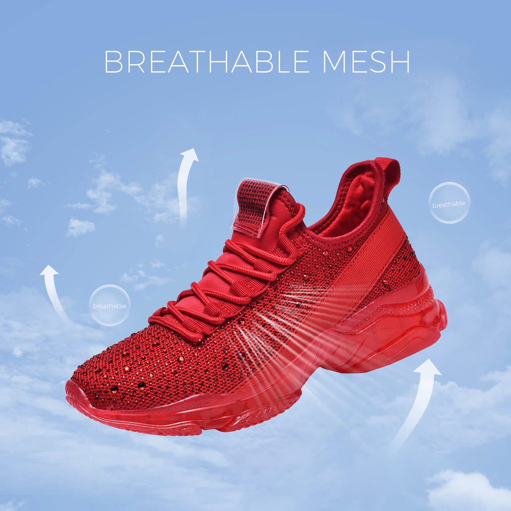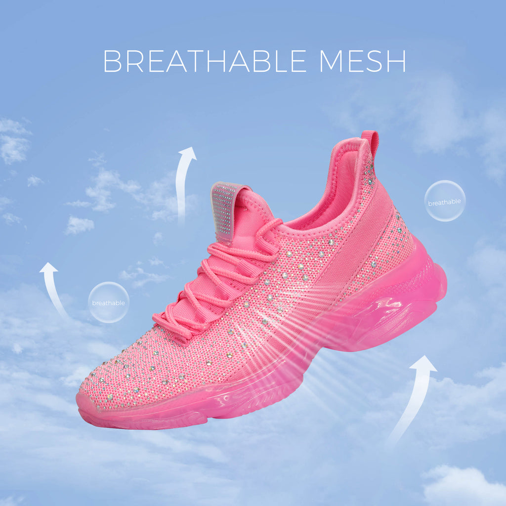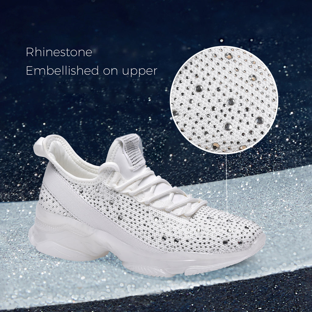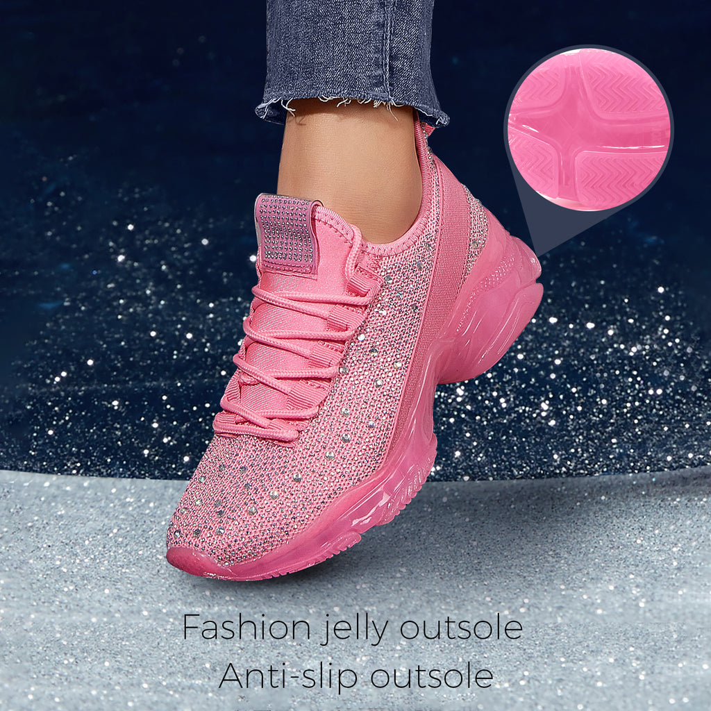 Lucky Step Women's Rhinestone Mesh Slip-On Sneakers - Sparkle Glitter Breathable Walking Shoes