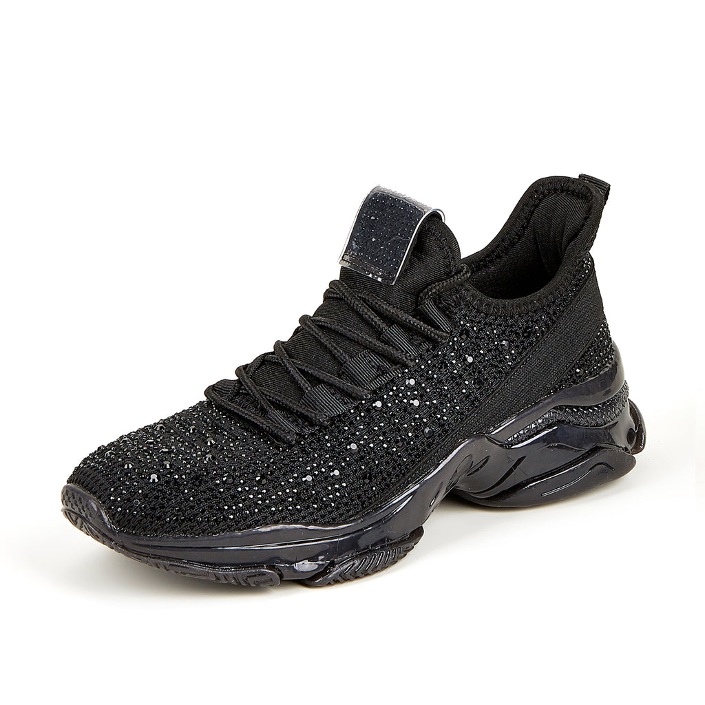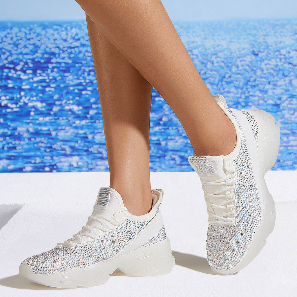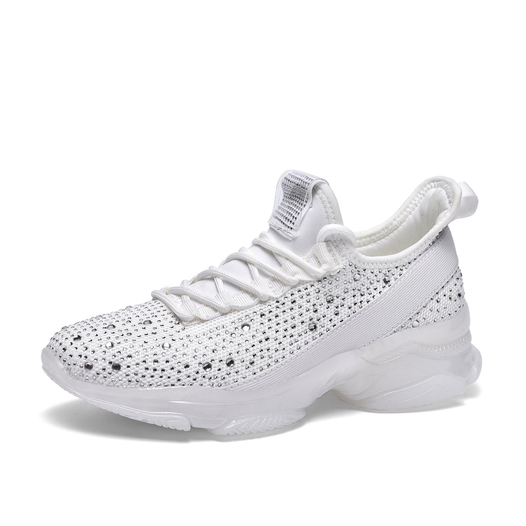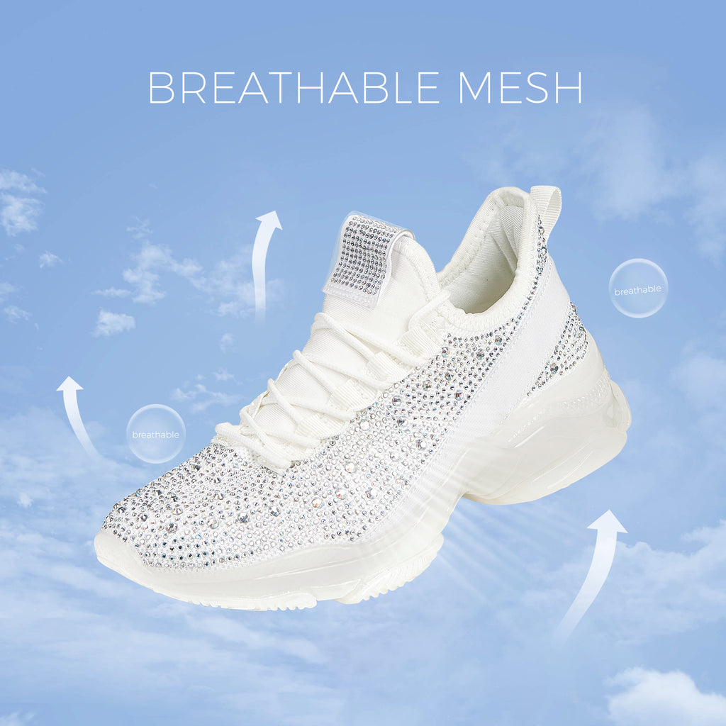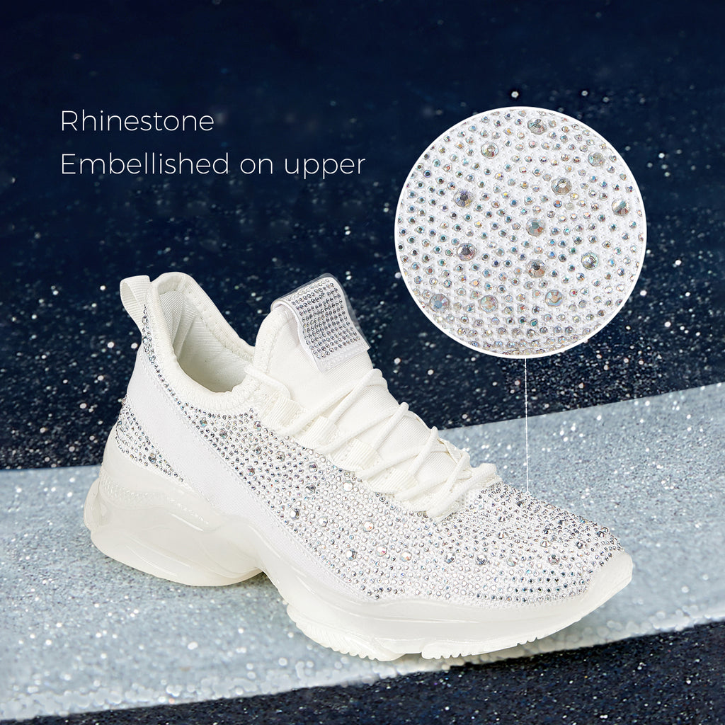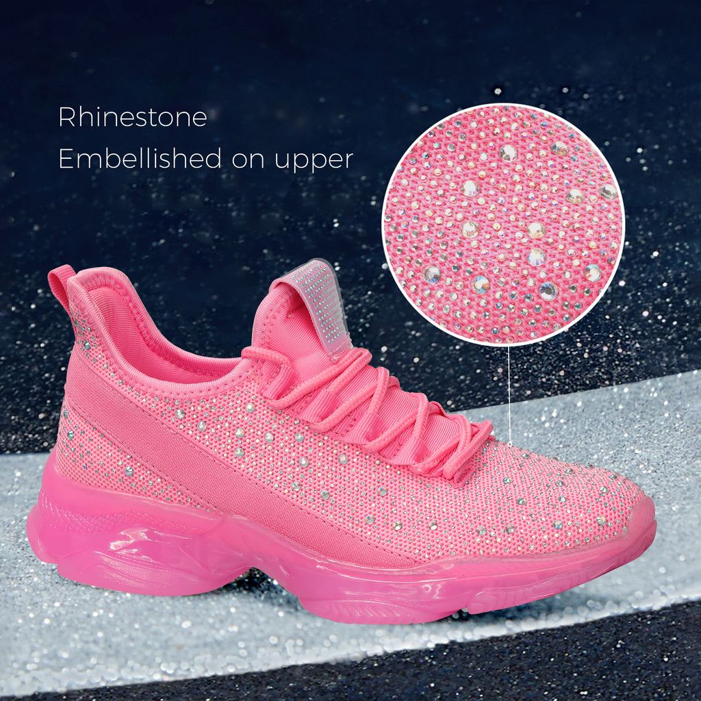 Lucky Step Women's Rhinestone Mesh Slip-On Sneakers - Sparkle Glitter Breathable Walking Shoes